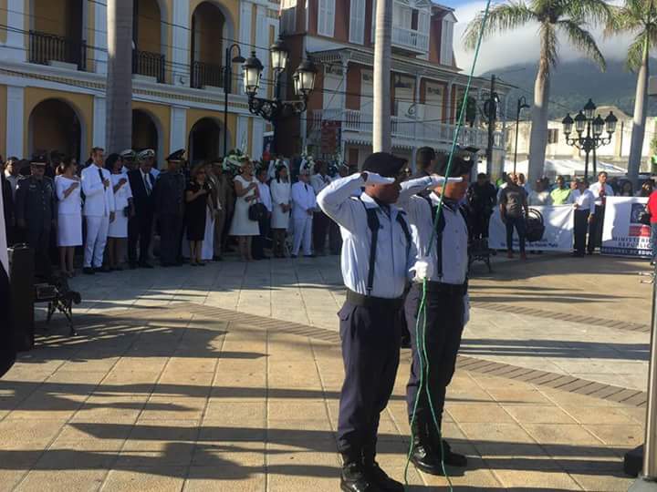 PUERTO PLATA.-Autoridades gubernamentales y municipales encabezaron en la mañana de este jueves 16 de agosto del 2018 el acto de enhestamiento de la Bandera Nacional al compás de las notas del Himno Nacional y una ofrenda floral ante la estatua del General Gregorio Luperón en la Plaza Independencia con motivo del 155 aniversario de la Restauración de la República Dominicana.