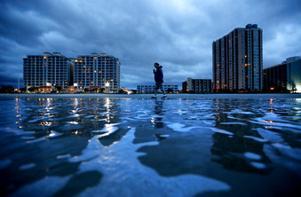 Más de 60 personas tuvieron que ser sacadas de un motel que se derrumbó y muchos más que desafiaron las órdenes de evacuación esperaban ser rescatados. Pedazos de inmuebles destrozados por el huracán volaban por los aires.