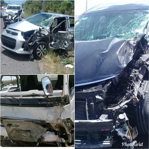 PUERTO PLATA. – Un total de 10 personas de diferentes edades resultaron con golpes y heridas de consideración en el triple choque de un camión y dos carros que se produjo el domingo al mediodía en la transitada carretera Puerto Plata-Montellano.