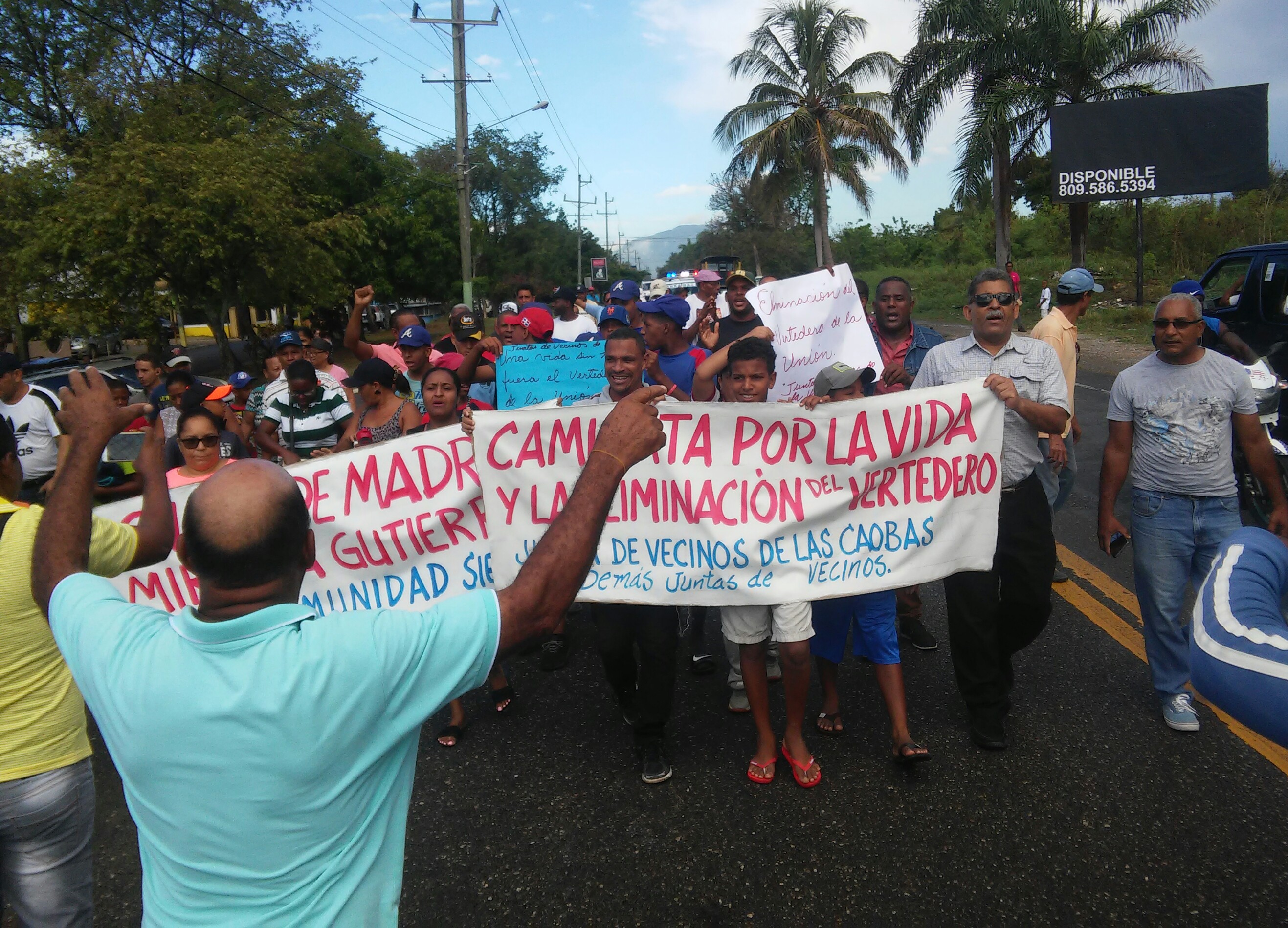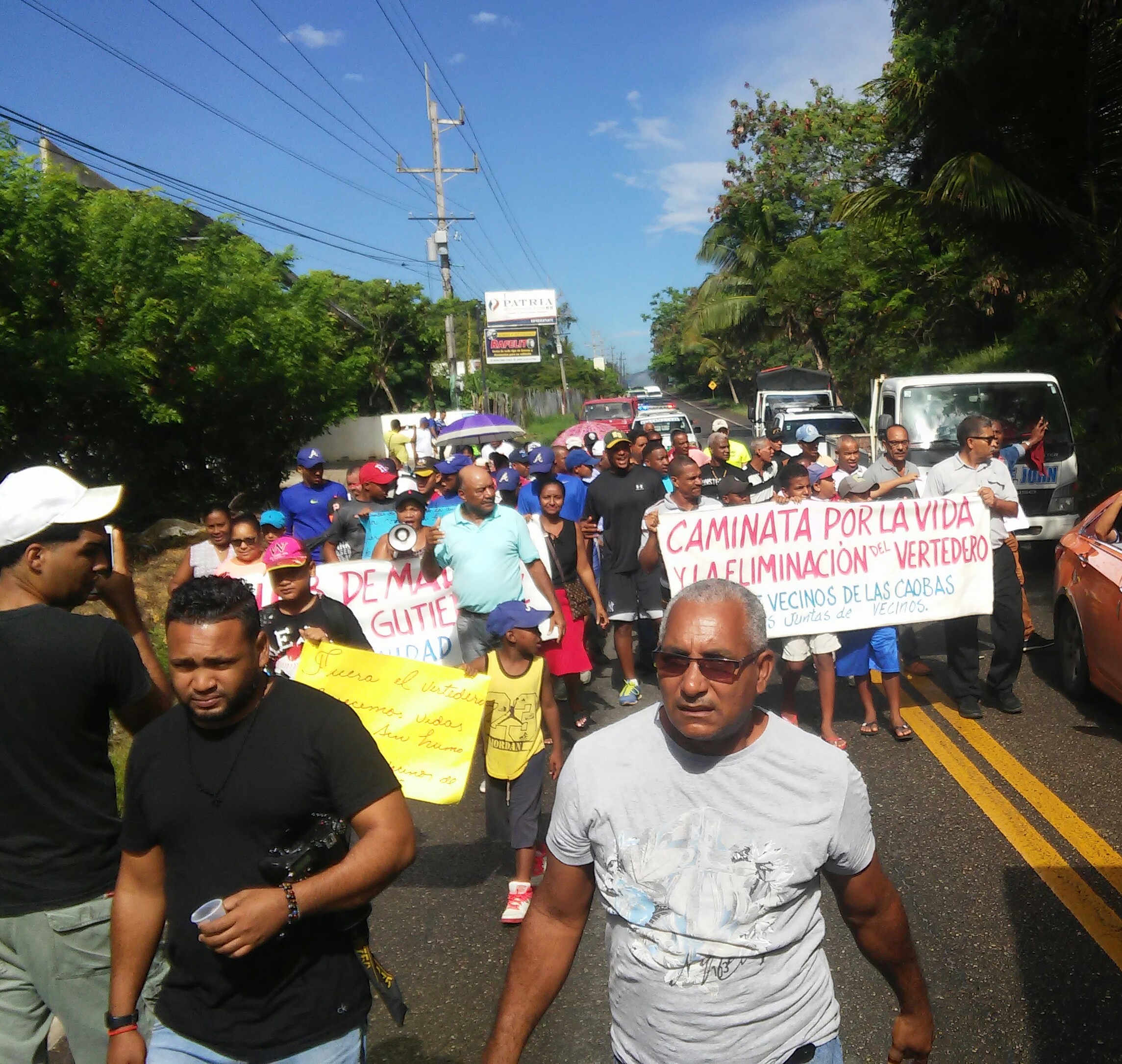 La misma estuvo encabezada por Wilson De León, presidente de la Junta de vecinos de Las Caobas, Julio Taveras, presidente de la Federación de Juntas de Vecinos, Yahaira Taveras, Villa Liberación, Poirfirio Martinez, 12 de Octubre, Darío García, La Unión. Centro, así como Mirella Gutiérrez, del Club de Madres, marcharon hasta la entrada del vertedero municipal.